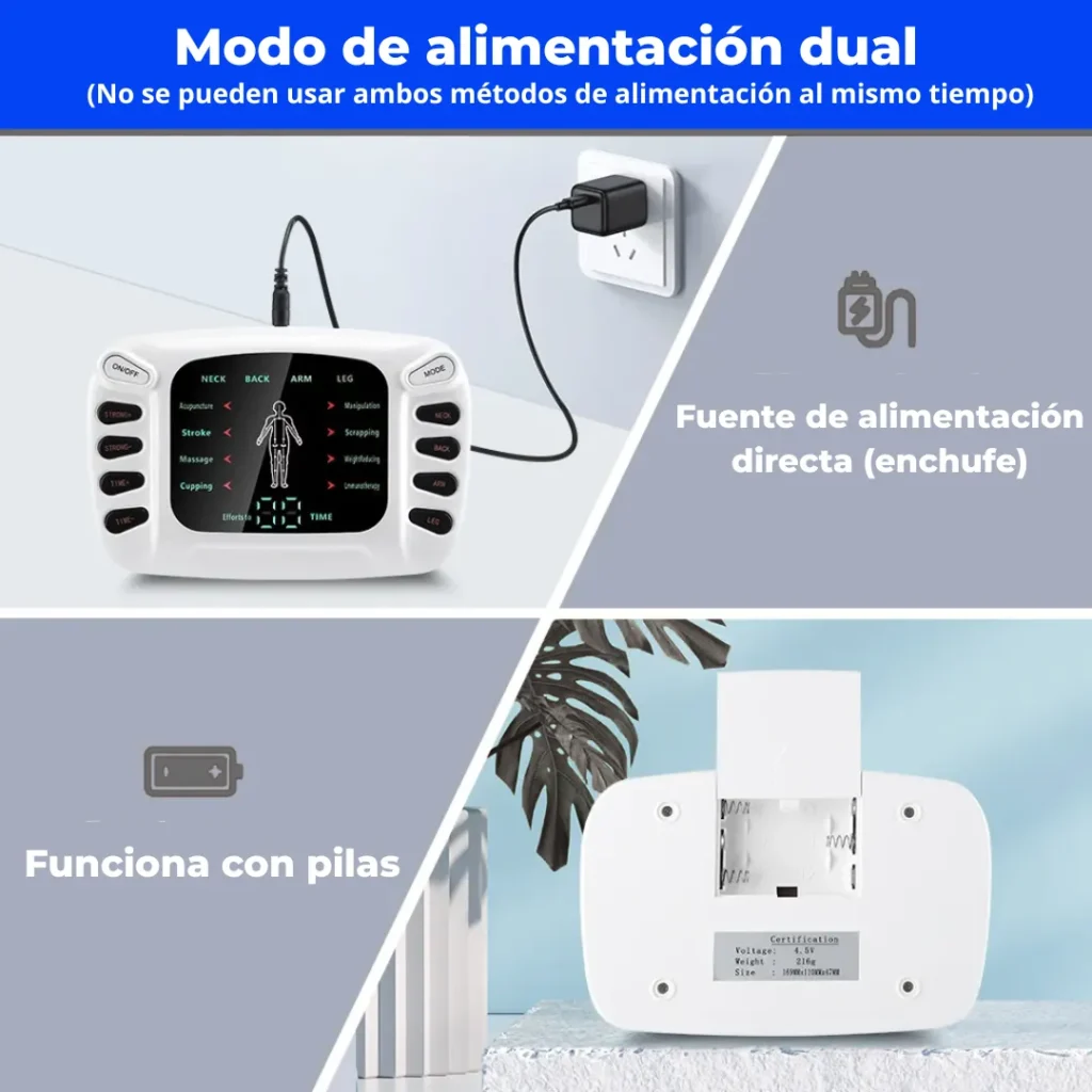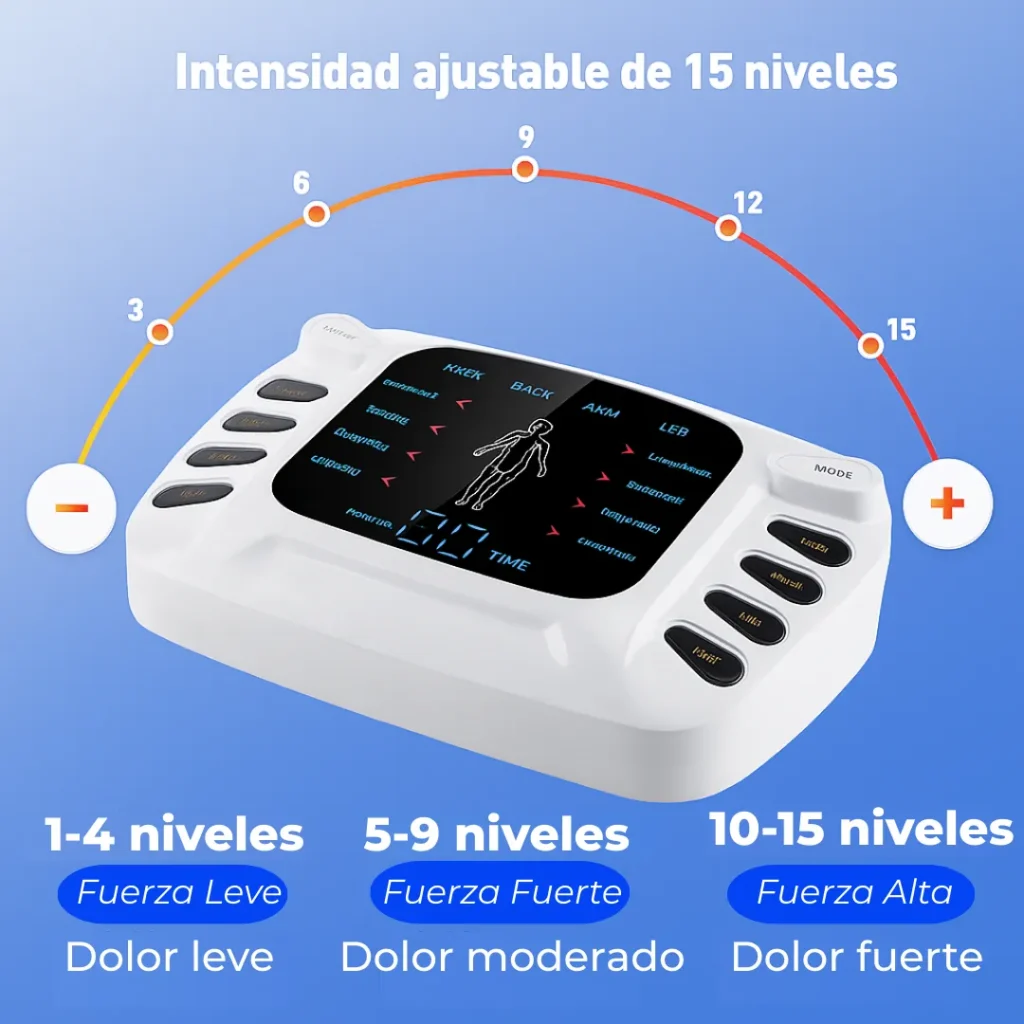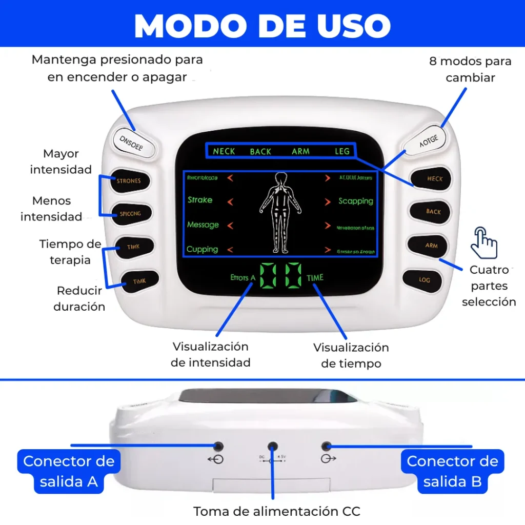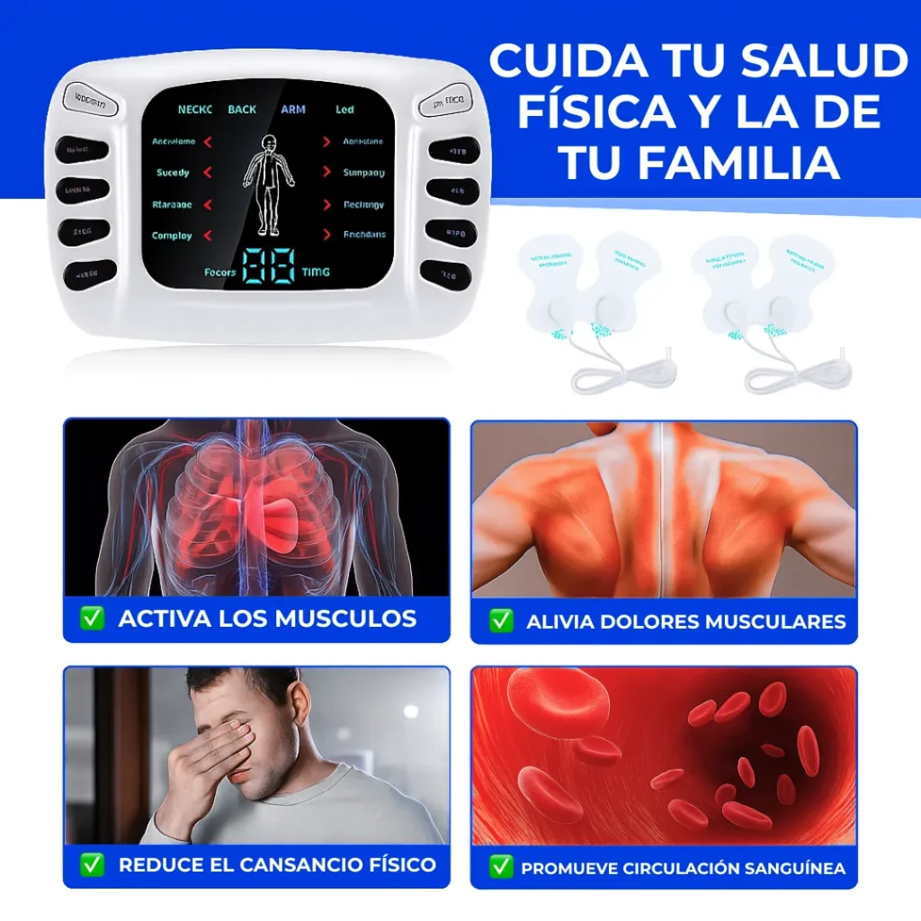 Usa impulsos eléctricos que estimulan los músculos y mejoran la circulación, ayudando a relajar profundamente las zonas con tensión.